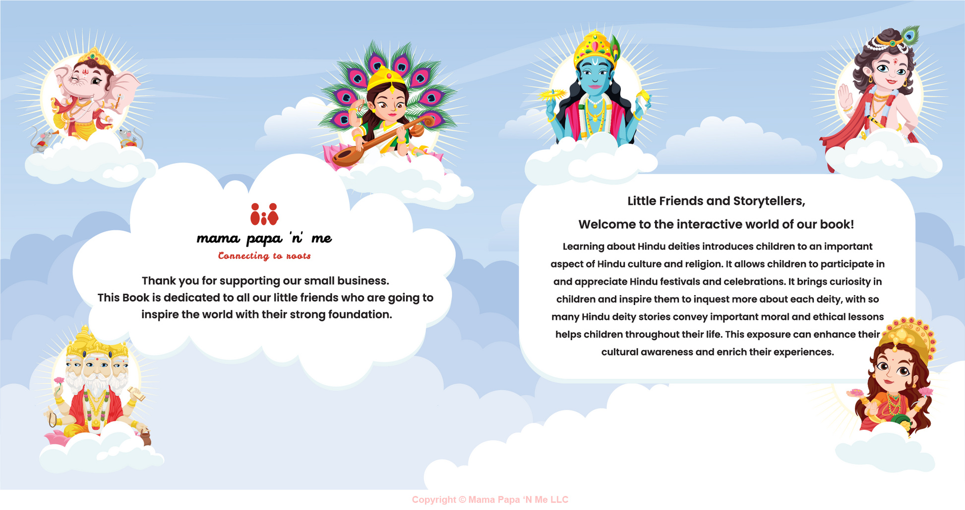 📜 Rhyme-Form Introductions: Explore the divine introduction of each god and goddess, written in captivating rhyme form. The rhythmic verses not only add an enchanting cadence to the tales but also make learning about these deities a playful and memorable experience for children.